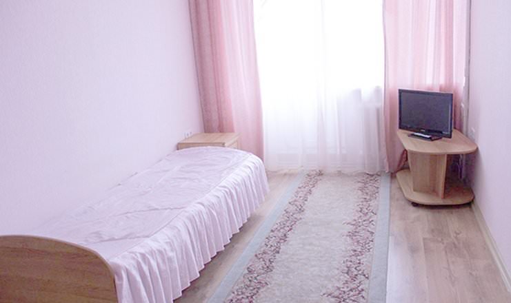 Площадь номера - 35 кв.м. 1 комната. 1 осн. место. В номере: телевизор; стул; 1-спальная кровать; на блок - душ, туалет; стол; шкаф. 1 доп. место: