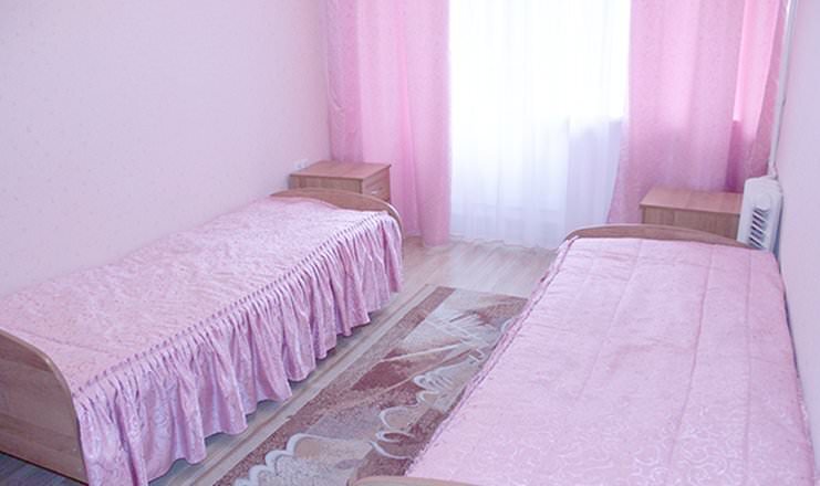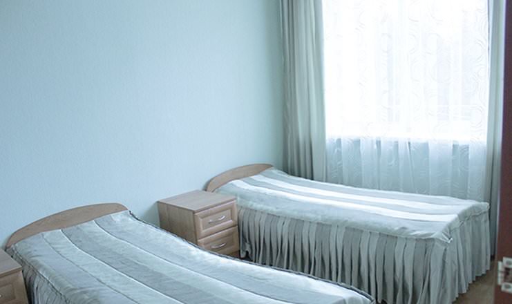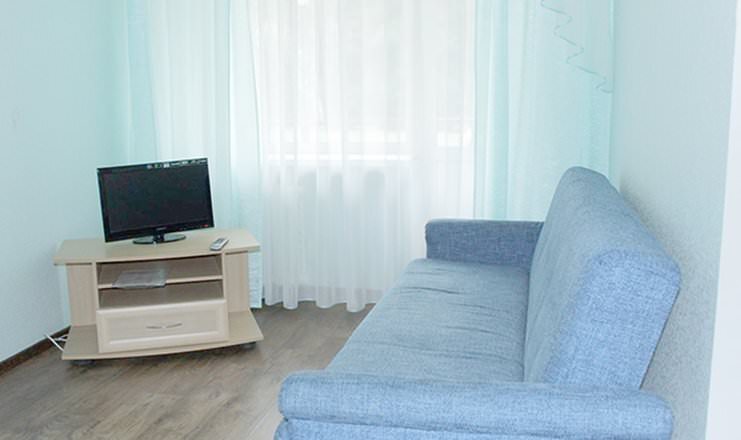 Площадь номера - 35-43 кв.м. 2 комнаты. 2 осн. места. В номере: телевизор; холодильник; душ; электрочайник; 1-спальные/ 2-спальная кровать; диван; журнальный столик; тумбочки; шкаф; чайный набор. 1 доп. место: